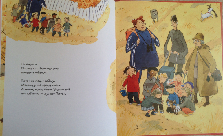 Очень ярко проиллюстрирована, рисунки акварельные. Текста не очень много, но не по два предложения на лист. Шрифт не классический, но всегда на белом фоне. Бюджетная , особенно в акции, книжка-картинка. Я бы лет с 3х предложила.