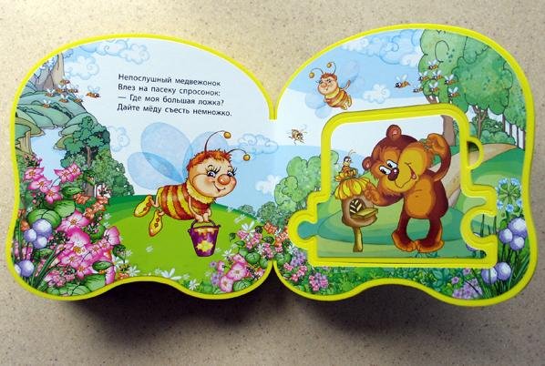Она раза в 1,5 больше, чем книжка-пышка от Лабиринта, с пазлами внутри. Хорошо ли крепятся пазлы я не проверяла, так как всё-таки подарок. Зато она была в прозрачном конвертике и мне это понравилось прежде всего, тем, что книга пришла целая и чистенькая, без царапин и вмятин, чего не могу я сказать о Лабиринтовской книге (там мне повредили одно ухо и книга была грязновата).