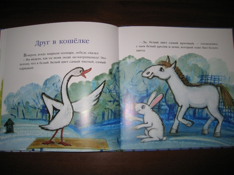 На первый взгляд, книжка казалась совсем малышковой, безнадежно тоненькой и неоправданно дорогой. Но зебра косила лиловым глазом, практически подмигивала и предлагала подружиться. И что еще там за друг в кошелке?