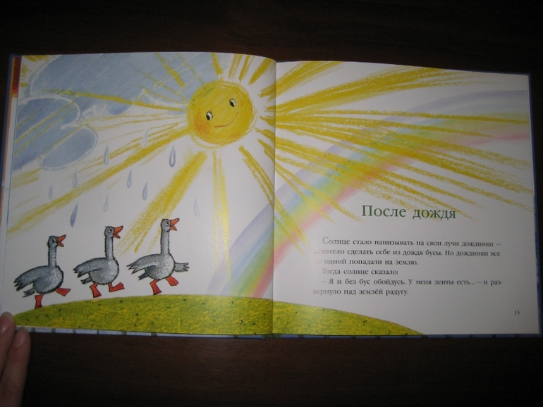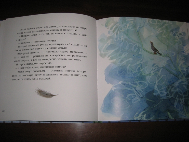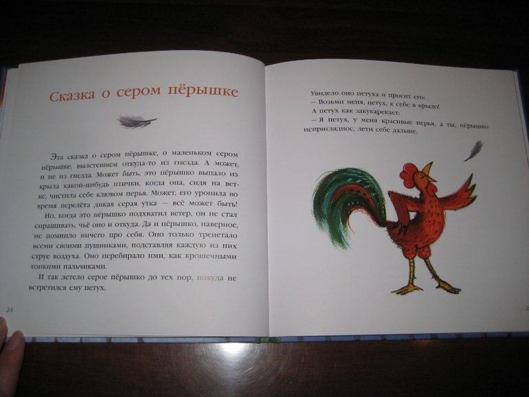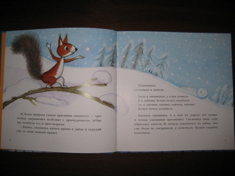 Ах, какая чудесная оказалась книжонка! Маленькая, ладненькая, что называется, и в пир, и в мир, хоть самой читать ребенку, хоть для самостоятельного чтения. Хоть для совсем маленьких, хоть для практически школьника. Да и сама с удовольствием прочитала и о снежинке, которая летела приветом, обрастала себе подобными и в результате превратилась в снежную гору, и о том, как медведь с медведицей искали медвежат и обнаружили их дома, мирно спящими, и о маленьком сером перышке, от которого отказались и петух, и попугай, и павлин, но которое приняла маленькая серая птица, оказавшаяся соловьем, и о забавном Ни-то-ни-сё... Ну а о друге в кошелке следует рассказать особо: