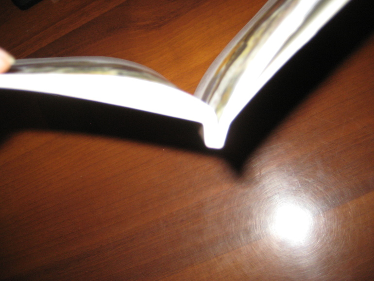 Книжка склеена и это автоматически заставляет усомниться в ее долговечности. Честно говоря, фотографировала с опаской, боялась, что разлетятся листы. Поэтому старалась не раскрывать ее до конца.