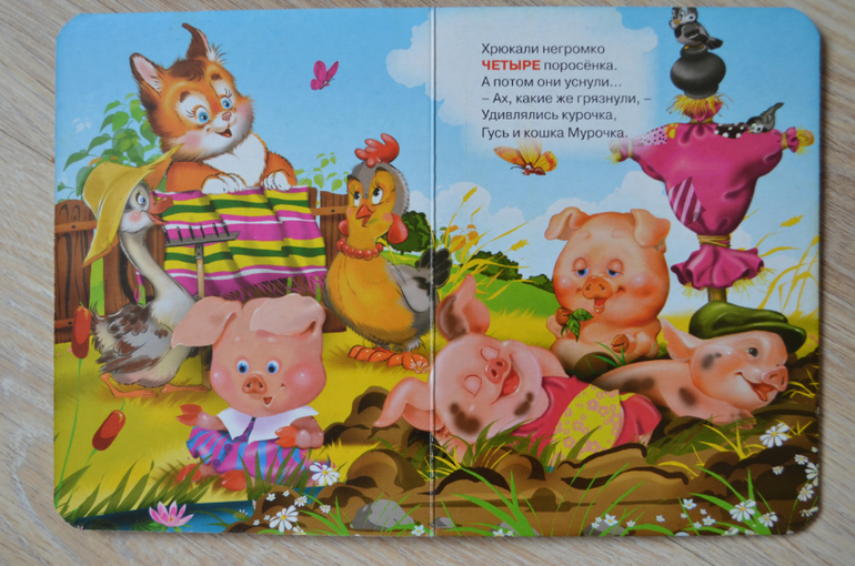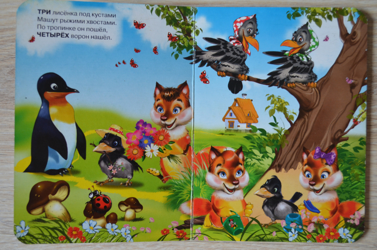 Красочные иллюстрации в точности воспроизводят смысл стихов: дочка просто обожает вновь и вновь пересчитывать персонажей.
