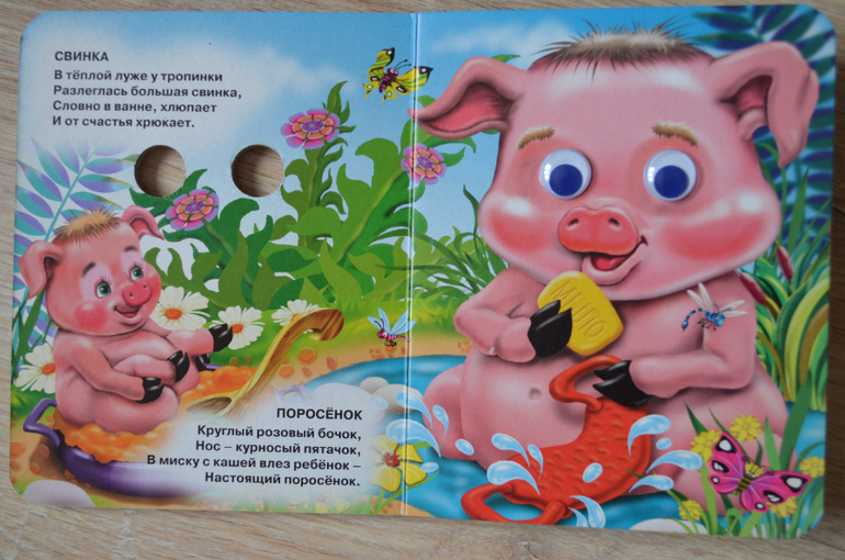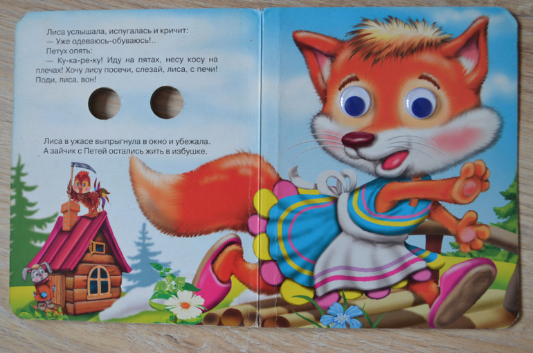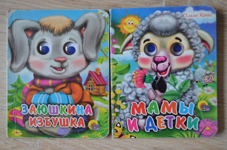 Отдельно хотелось бы сказать про книжки-картонки с отверстиями для глаз животных: у нас таких две («Заюшкина избушка» и «Мамы и детки»).