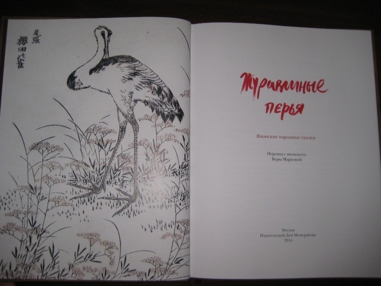 Перевод в обоих сборниках классический, Веры Марковой, поэтому я решила их проверить с точки зрения объема изложения, допуская, признаюсь честно, что могло быть какое-то сокращение, уж слишком большая разница в количестве сказок, и вот что обнаружила. Текст совпадает один в один, до слова, но в "Журавлиных перьях" есть, например, две сноски к сказке "Морской рак и ворон" - объясняется значение слов "данго" и "фусума", а в "Японских волшебных сказках" только одна - к слову "данго". То же с примечаниями к сказке "Соловьиный дом": в "Журавлиных перьях" не только дается толкование слова "мисо", но и объясняется, почему в Японии кладовые строятся отдельно от дома.