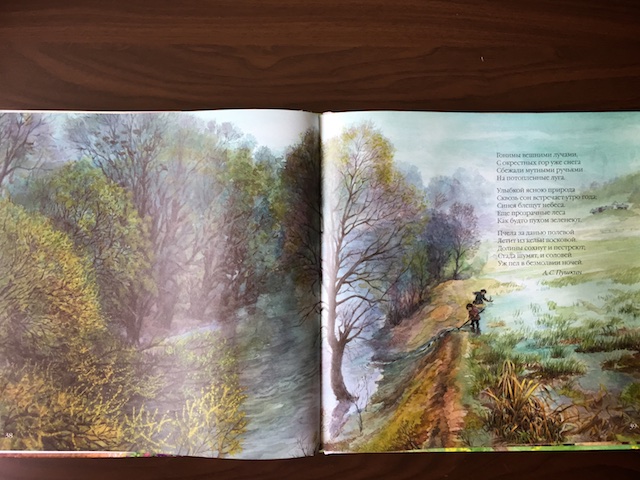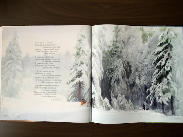 Оформление книги замечательное. Квадратный формат, иллюстрации на весь разворот, из-за чего появляется почти панорамный эффект.