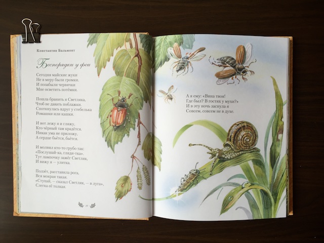 В сборнике от Эксмо много не самых известных стихотворений, есть очень подходящие для детского чтения: про птиц, насекомых и даже фею. Вот два самых любимых Настей в настоящий момент: