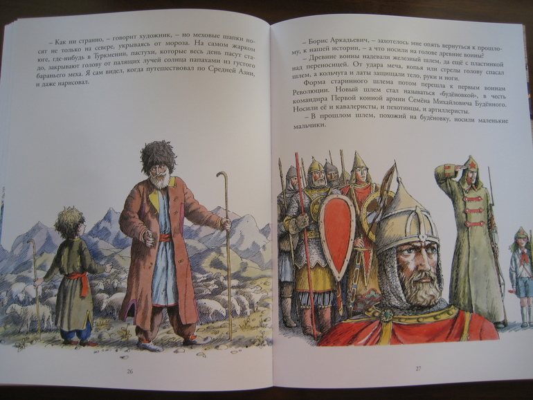 Коснулись и нашей истории. Интересно, как железный шлем древних воинов трансформировался в годы гражданской войны в знаменитую "будёновку".