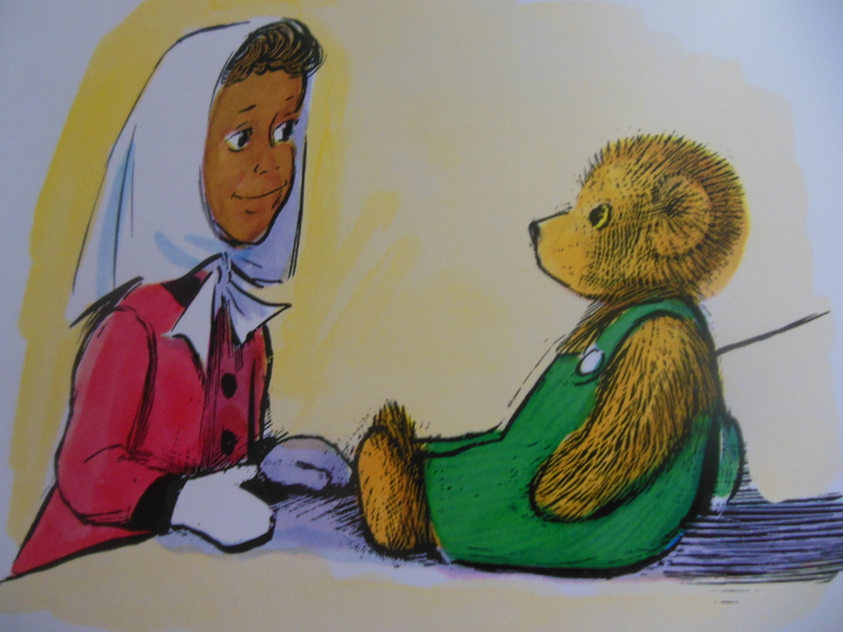 Лиза (так звали девочку) готовилась к приходу Мишки: она поставила около своей кровати маленькую кроватку. Мишка, когда увидел комнату, решил, что это и есть дом и сказал, что всегда хотел жить дома!