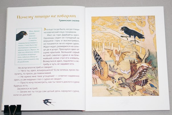 Расскажу сразу -обложка мягкая, печать достойная, очень яркая, правдоподобная. Книга собрала народные сказки мира о всевозможных птицах : от Жар-Птицы и Курочки Рябы до ласточки и страуса.
