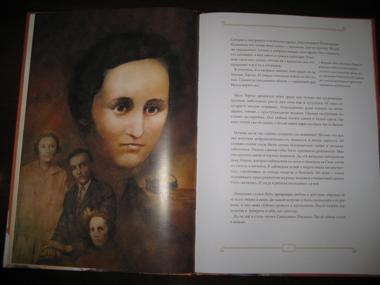 Еще по поводу одного места у нас разгорелся нешуточный спор: "Мать любила Агнес, именно она предложила дочери стать монахиней, чтобы нести свет мира людям. Мама сказала, чтобы девочка не беспокоилась о семье. Не каждая сможет самоотверженно любить Бога, чувствовать, что церковь - это дом, а все люди - родные. После такого благословения девушка покинула отчий, мирской дом".
