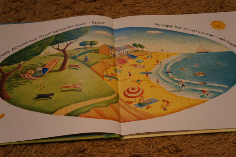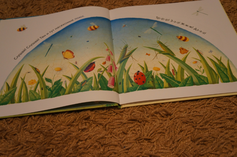 Чудесная книга издательства Поляндрии недавно поселилась в нашем доме. Своими волшебными картинками и звуками она покорила всех. Отрывки текста так и "прилипли к языку", целыми днями ходим и повторяем как магическое заклинание: " чпок-хруп-мяууу-бррр-тррр-шшшш-дззз-жжжж....".