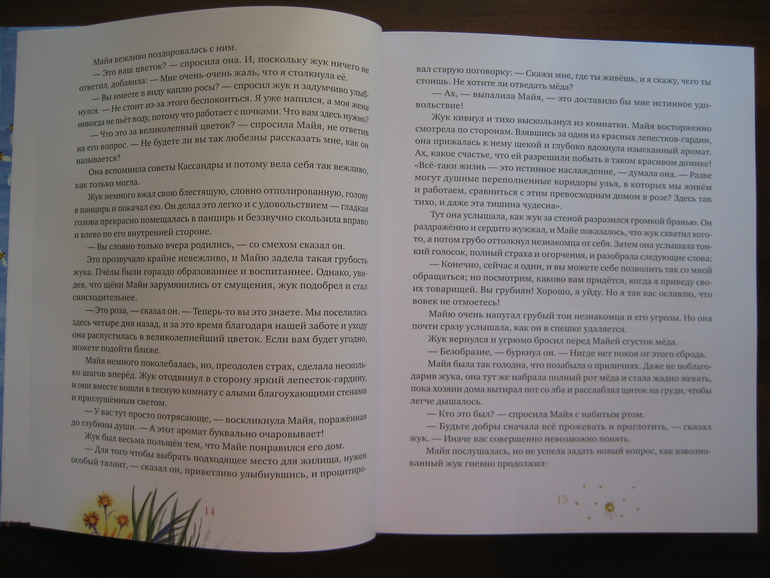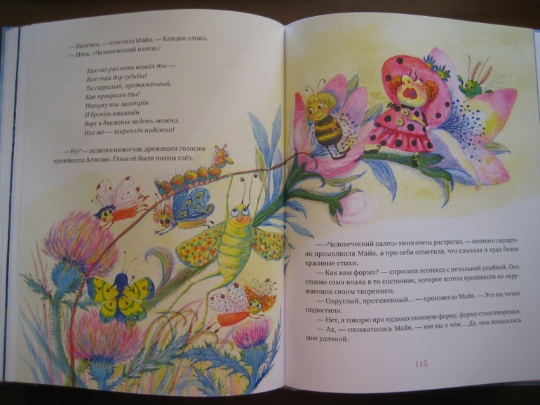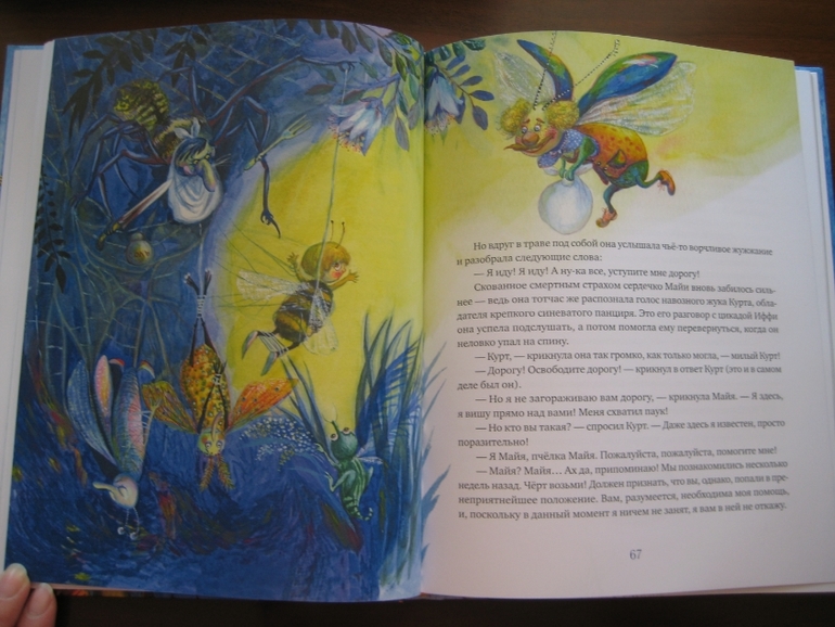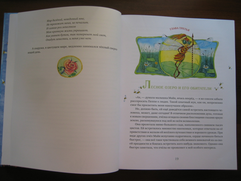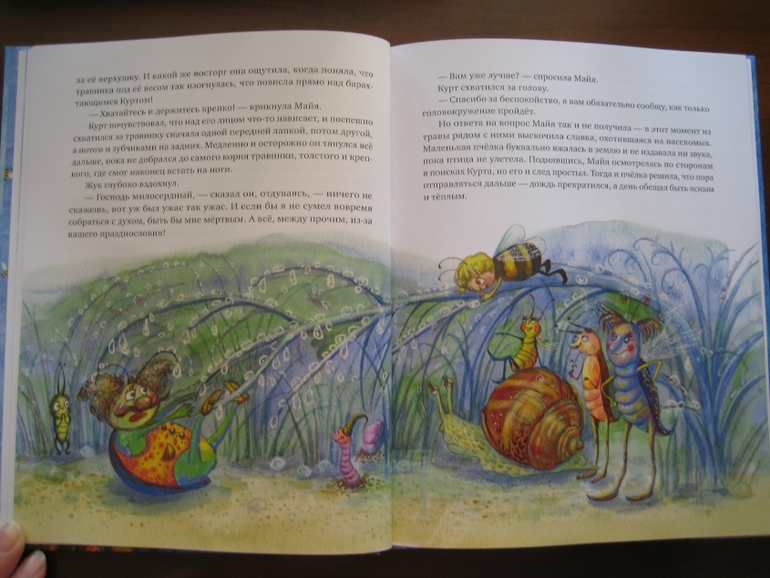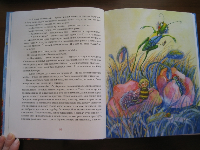 В-третьих, книга оказалась практически настоящим пособием по энтомологии: пчелка Майя, покинувшая улей и отправившаяся, что называется, на вольные хлеба, знакомится с разными представителями мира насекомых, наблюдает их в естественной среде и во всем многообразии привычных форм поведения. Исключительно познавательное оказалось чтение! Признаться, я и сама много интересного узнала :)