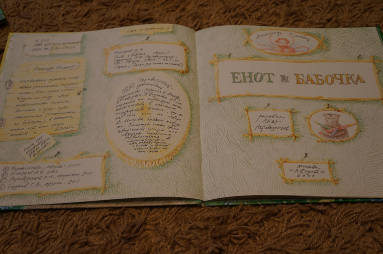 Очень интересно оформлен разворот с выходными данными книги. Есть небольшая ознакомительная информация об авторе книги и художнике. После такого знакомства книга становится уютнее и роднее.