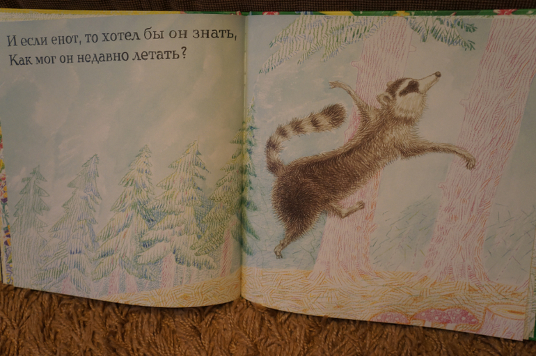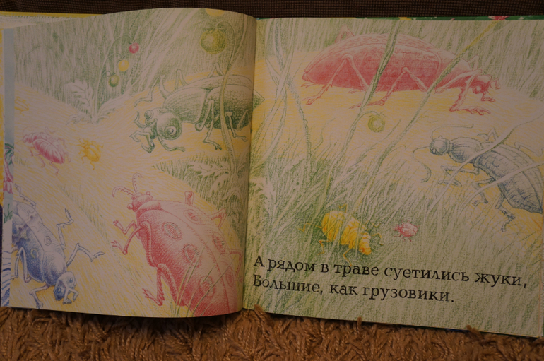 Очень нежные картинки. при этом яркие, сочные, летние и солнечные. Петр Перевезенцев своими карандашными рисунками передал воздушность и легкость сна. Ощущение, если провести ладошкой по страницам, то она окрасится в разные цвета от рисунка.