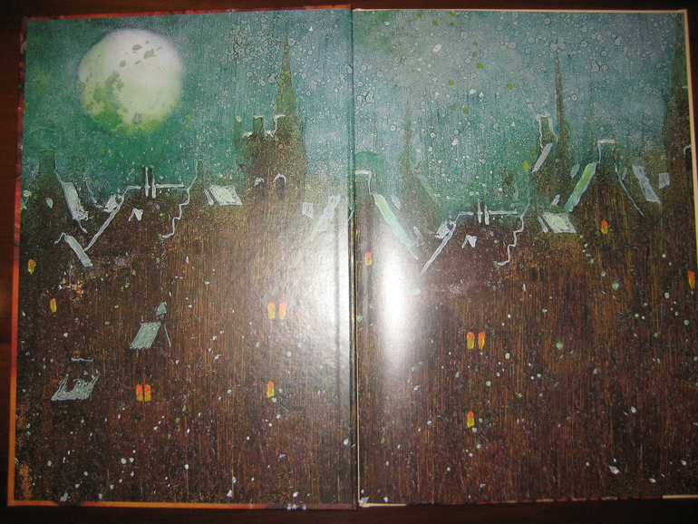 Форзац и нахзац идентичны - обожаю эти тесно прильнувшие друг к другу крыши скандинавских домов, этот мирный уют и тихо падающий в свете луны снег...