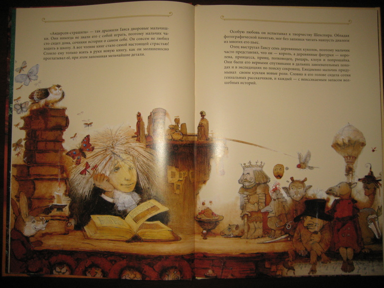 "Андерсен-страшила" - так дразнили Ганса дворовые мальчишки. Они никогда не звали его с собой играть, поэтому мальчик часто сидел дома, сочиняя истории о самом себе. Он совсем не любил ходить в школу. А вот чтение книг стало самой настоящей страстью! Стоило ему только взять в руки новую книгу, как он молниеносно проглатывал ее, при этом запоминая мельчайшие детали.