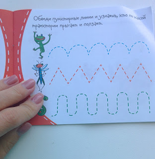 Но для домашних занятий, пожалуй, удобнее листы А4 распечатывать с такими графомоторными заданиями, ну или покупать пособие форматом побольше, например, ту же Земцову или Кумон, а в дороге или в очереди - как раз: занимает мало места, стоит что-то типа 30 рублей. Милое дело, в общем!