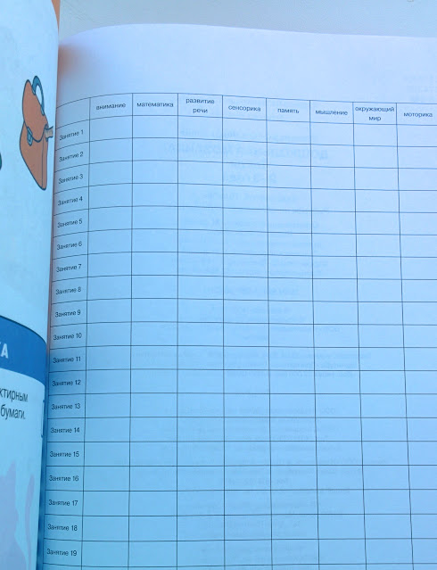 А в конце (мой внутренний аутист захлопал в ладоши!) есть табличка для учета. Там можно писать, например, дату выполнения или ставить +/- , чтобы потом понять, с чем малыш справляется легко, а что подтянуть.