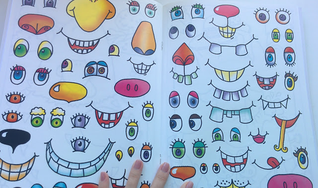А еще мы пробовали к таким страничкам клеить подвижные глазки, пуговки, кнопочки, круглые магнитики - в общем, искали разные предметы и подбирали, тоже здорово! Развивает фантазию. Можно сразу набрать подходящие мелочи, насыпать в тарелочку и предоставить ребенку возможность самому экспериментировать. Только под присмотром, конечно, особенно если малыш все еще тянет мелкие предметы в рот.