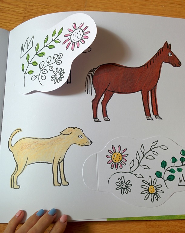 Надо сказать, что раскрашивать ее даже немного жалко. Она очень большая, красивая, интересная. Поэтому мы пока с ней просто играем. Это мне и нравится в книге, она такая долгоиграющая. Малыши могут ее полистать-пооткрывать окошки, а постарше уже раскрашивать, рисовать по образцу. Бумага плотная, фломастеры не просвечивают, краски тоже хорошо ложатся.