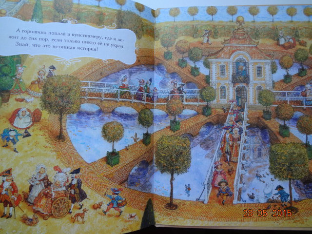 "Книги рождаются по-разному: появлению одной предшествует множество эскизов и переделок, другая так и бежит из-под кисти. А идея этой книжки, по свидетельству художника Антона Ломаева, осенила его во время прогулки по пригородному парку в один из последних осенних солнечных дней. И это неудивительно: ведь когда-то по его дорожкам ходили настоящие императоры и императрицы, принцы и принцессы, фрейлины и придворные…"