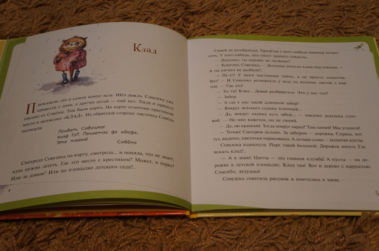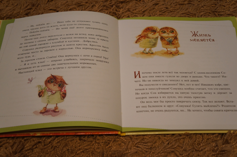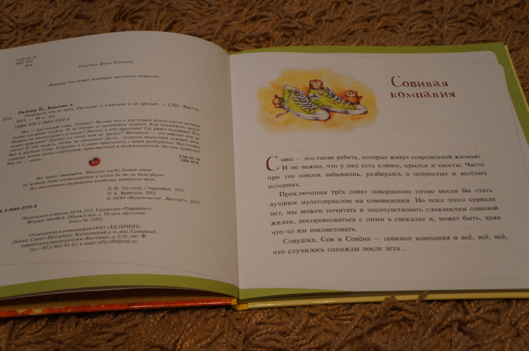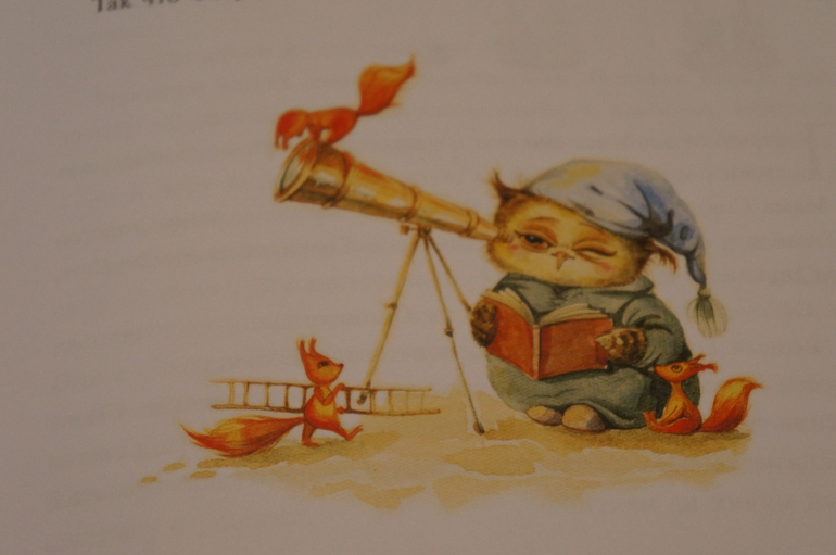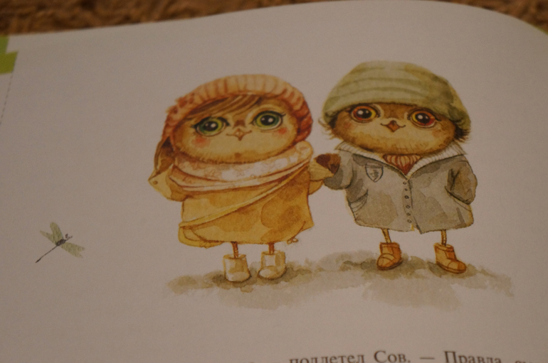 И конечно же много-много милых совят от Инги Пальцер:) В каждой истории по 2 картинки. в начале и в конце. Уточню, истории по 2 странички всего. Также встречаются небольшие зарисовки на полях или у нумерации страниц.