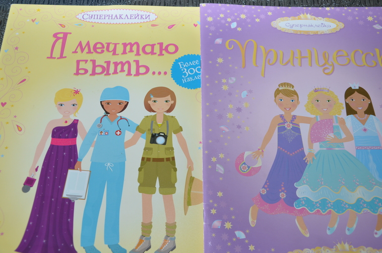 Дочке очень понравились Принцессы и Все работы хороши. Вторую мы исклеили еще в три с половиной, но она до сих пор актуально, рассматриваем-читаем. Придумываем истории и небольшие рассказы - отличное пособие по развитию речи получилось.