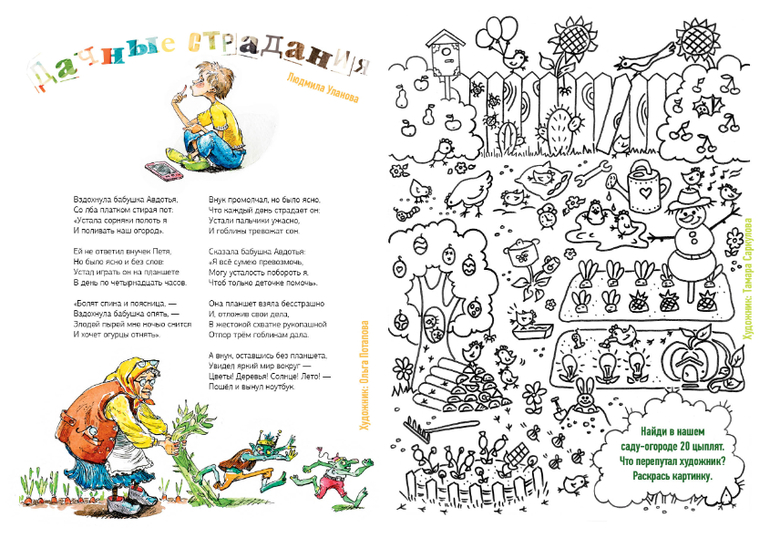 Из него вы узнаете о том, как можно путешествовать, не расставаясь с собственным садом-огородом. Понаблюдаете за борьбой бабушки с сорняками и компьютерными монстрами. Вместе с героями Чердака-Чердобряка вычислите опасного чердачного преступника. А летучая мышь Архиляка расскажет вам о том, как делаются витражи и как связаны между собой вокзалы и выступления знаменитых музыкантов. А так же финальная глава Летописи Сладкоежек, кроссворды, задания, английский язык и много-много всего интересного и яркого!