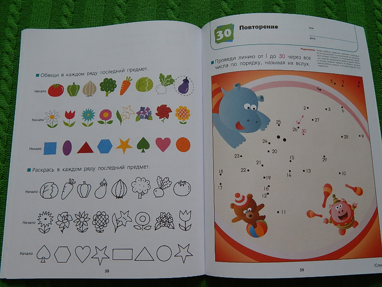 Слева задания такие - нужно провести линию, чтобы соединить определенный предмет - это поинтереснее)