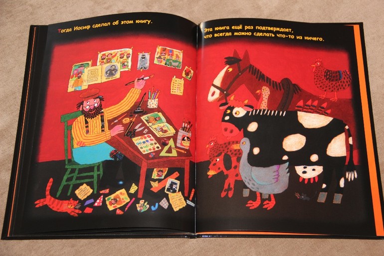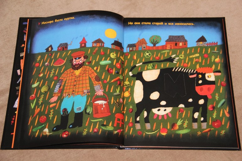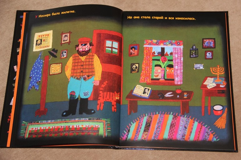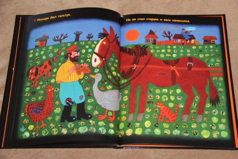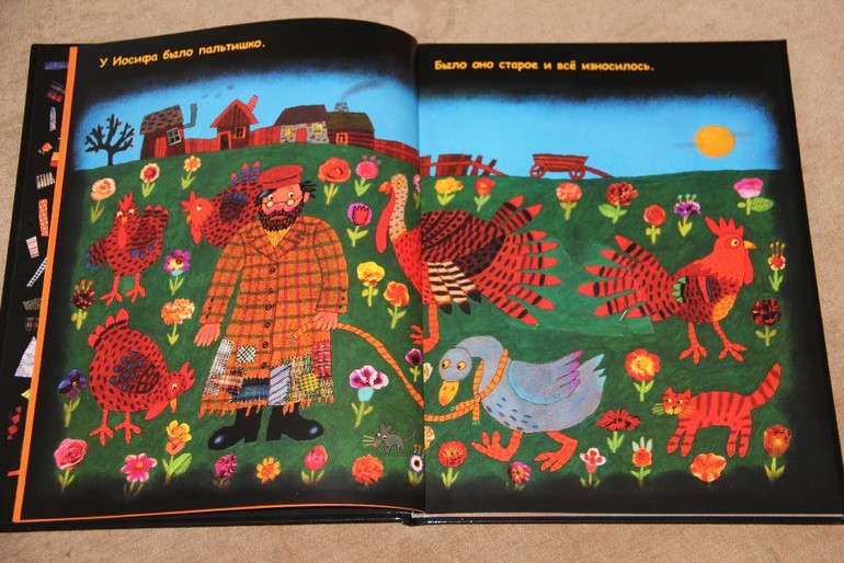 У Иосифа было пальтишко, а в нем - полно дырок, точно как в этой книге! Когда пальто Иосифа стало стареньким и совсем износилось, он сделал из него куртку, а потом из куртки жилетку, а из жилетки шарф, а шарфик то ведь тоже износился и тогда из него Иосиф сделал галстук, галстук в платок, а платок потом превратил в пуговицу для подтяжек, а когда у него совсем ничего не осталось, потому что последнюю пуговицу он потерял... Иосиф и написал эту веселую книжку.