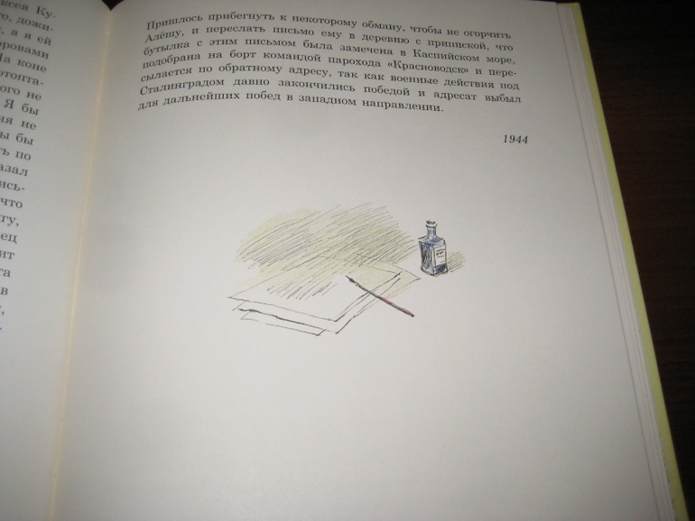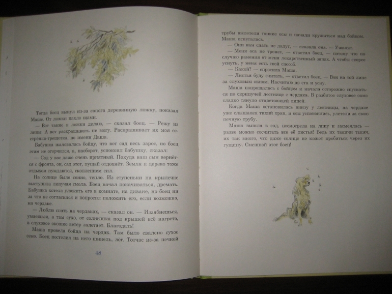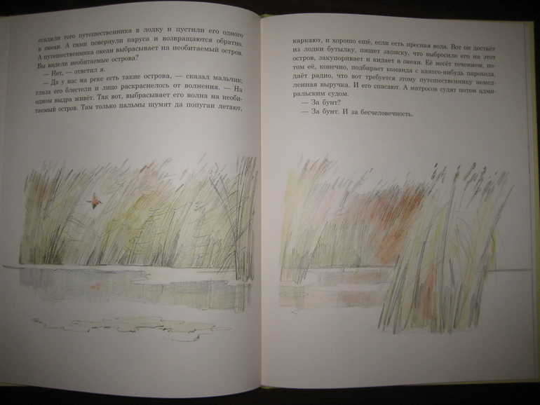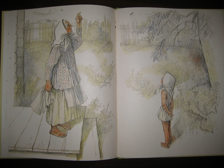 ...и качество печати, и шрифт, и насыщенность рисунков, и тон бумаги, а отпечатано, между прочим, в Твери, в ОАО "Тверской полиграфический комбинат". Какие просветы, о чем вы, здесь их и в помине нет! И офсет интересный, не "сухой", не грубо-толстый, не поглощающий рисунок. Такое качество бумаги, как здесь, позволяет карандашным рисункам смотреться еще выигрышнее.
