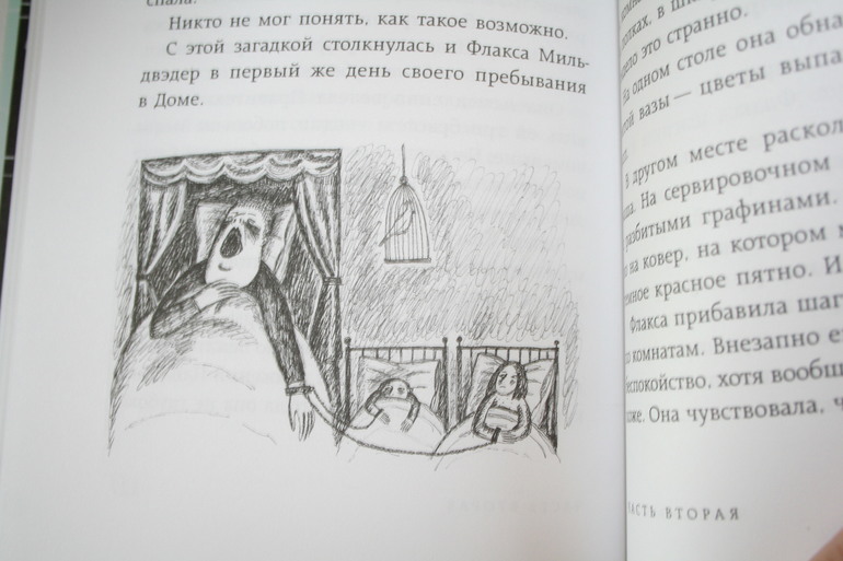 Обложка твердая, глянцевая, листы плотный офсет с крупным текстом, в книге много чернобелых иллюстраций, они отлично сочетаются с текстом и дополняют его. Лучше всего художнику, как мне кажется, удалось изобразить гувернантку Нану.