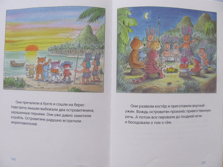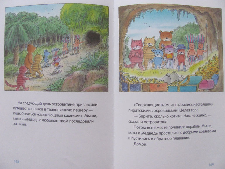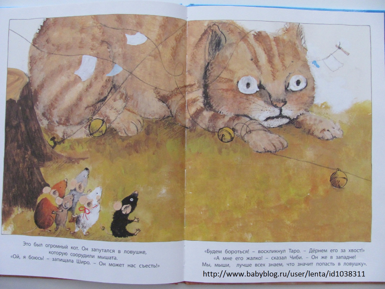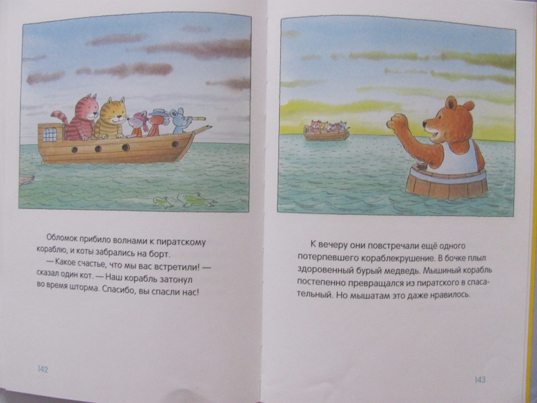 На этом развороте ребенок улыбается, и радуется дружбе мышей и кота.
