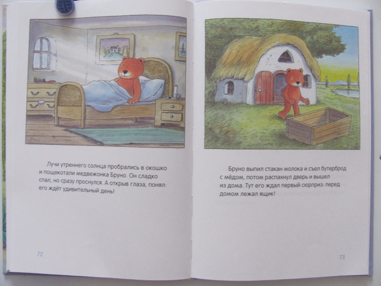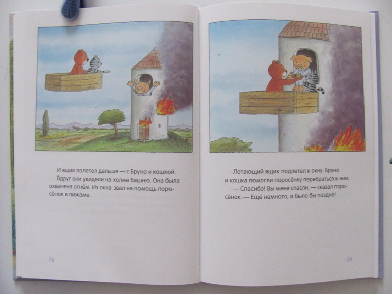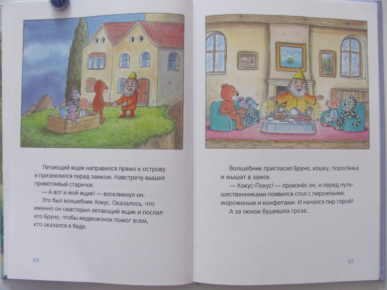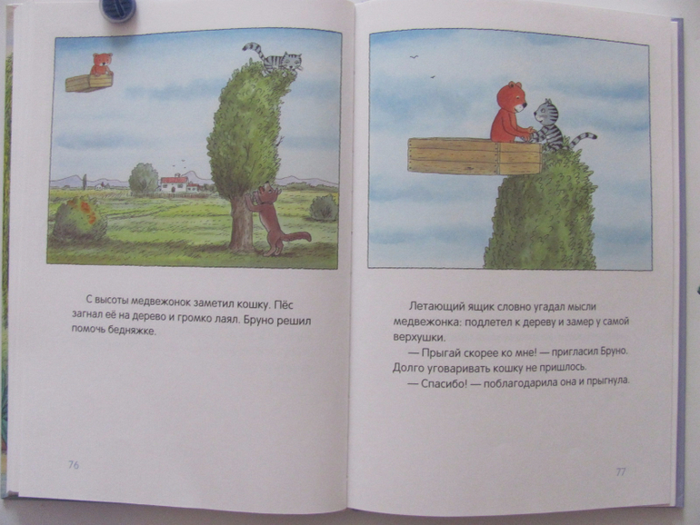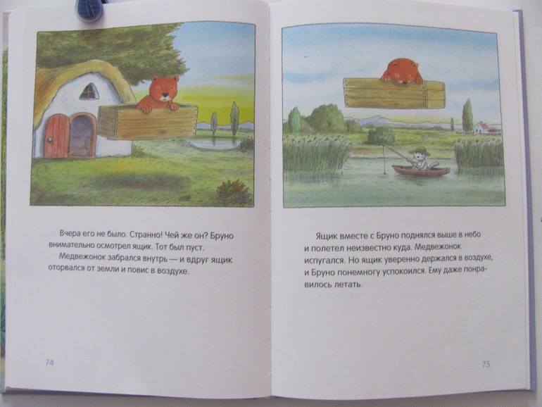 История про летающий ящик читали раза три, потом надоело ребенку. Хотя ему понравилось что ящик летает, медвежонок всех спасает...