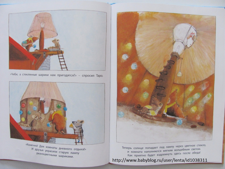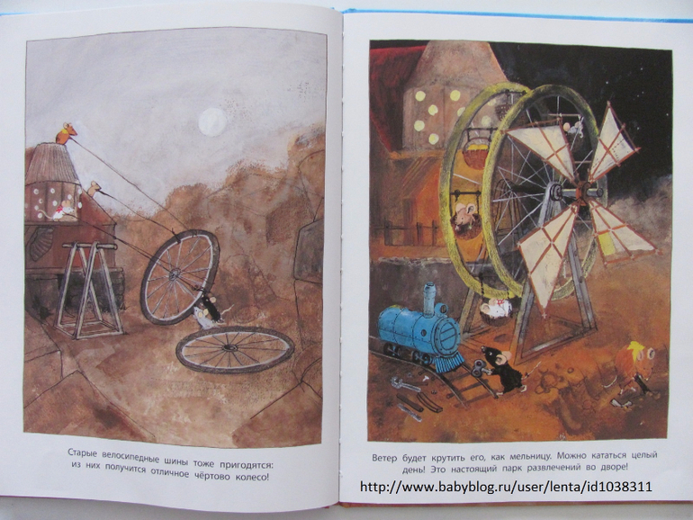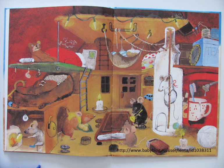 А еще комната дневного отдыха - согласитесь, здорово придумано! С каждой новой прочитанной страницей, мне все больше нравились эти мышата-изобретатели, а ребенок так вообще под впечатлением. Переворачиваем страницу, а у него глаза горят - "Мама, а это что, а это?"