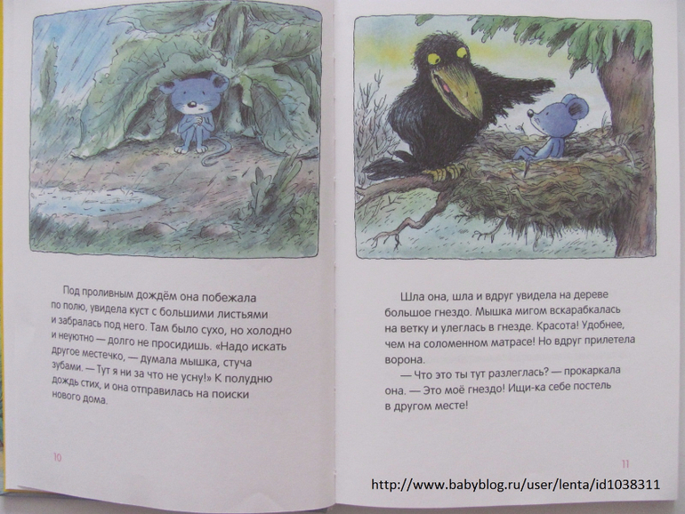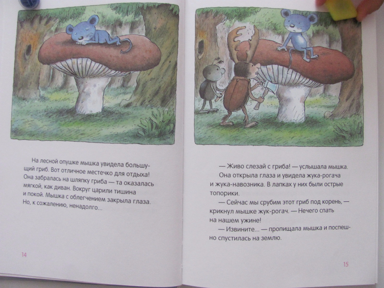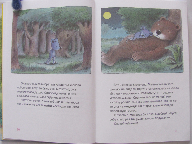 Спасибо за все развороты про "спящую" мышку - почитала и все же решила не брать: по стилю очень похоже на Шустрика и Тишку, но туи сказки про мышки лягушонка мне совсем не понравились.
