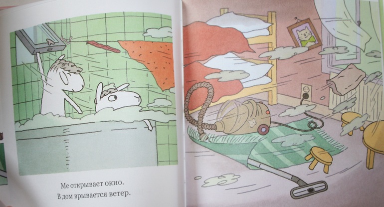 Малышам от 0 до 3Замечательные шведские художники и иллюстраторы Улоф и Лена Ландстрем подарили нам серию книг про неугомонных и любопытных овец Бе и Ме. В этот раз Бе и Ме остались одни и решили убраться в доме. Книга начинается с картинки, где мы видим, как Бе и Ме стоят в свой комнате и не знают с чего начать, а кругом лежат разбросанные игрушки и вещи. Но, овечки решают не терять время зря и приступают к уборке. Бе достал пылесос, а Ме, повязав косыночку, принялась собирать кубики с пола. Иллюстрации выполнены в спокойной цветовой гамме, не раздражающей глаза юного читателя. Текст доступен и понятен даже самым маленьким. Истории про Бе и Ме будут интересны всем детям вне зависимости от их возраста и интересов. Ведь каждый ребенок хоть раз убирал свою комнату и знает, как это непросто. То носок запылесосит, как Бе, то пылесос вскроет, чтобы вытащить оттуда пропавшую вещь, то откроет окно и впустит в дом ветер, как это сделала Ме. Книги этой серии рекомендуются детям с 0 лет. Обложка матовая твердая, бумага плотный офсет.