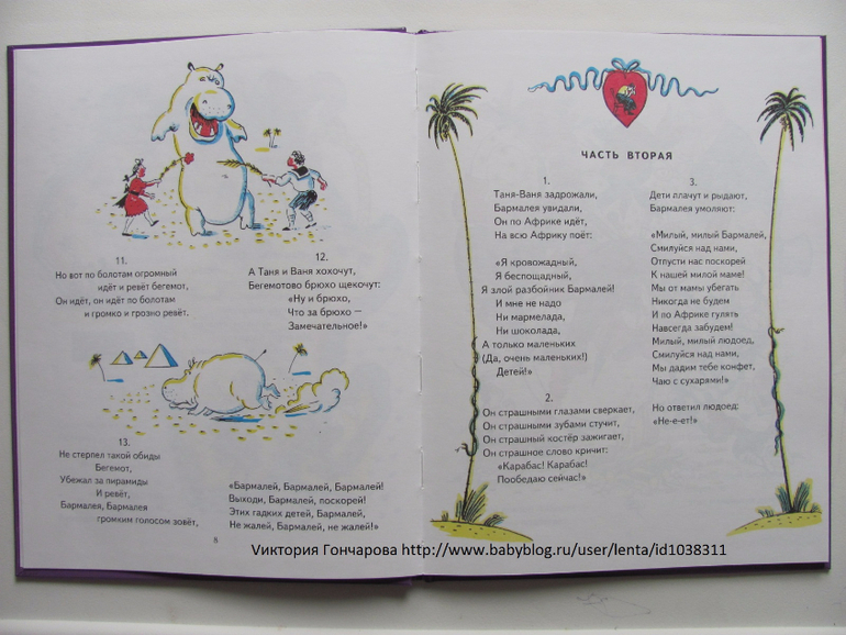 "Бармалея" мы с ребенком еще не читали (кстати отдельно это произведение издало изд-во "Мелик-Пашаев"). А вот С.Я. Маршак понравился, вернее произведение "Пожар", здесь оно более полное. Мой ребенок, конечно знаком с этим произведением в другой редакции, но этот вариант слушал с интересом.