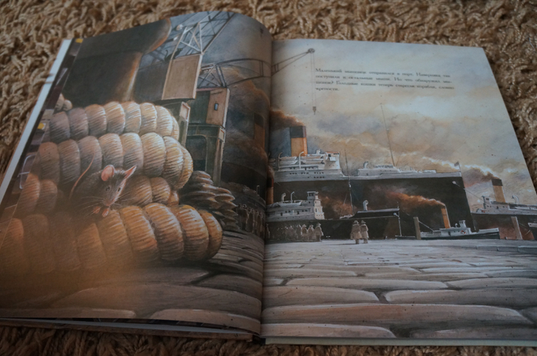 И вот дождливым вечером, чтобы усыпить бдительность сов, охотившихся за ним, мышонок решил совершить перелет через океан. Мышонку удалось оторваться от погони. Отважный малыш летел всю ночь и только утром показался огромный город.