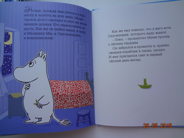 На удивление книга пошла "на ура" и А. даже запомнил имена персонажей, мне самой Снусмумрик дался со второго раза) Муми-тролли А. очень понравились, он задавал вопросы походу чтения, спросил, почему малышка Мю такая сердитая. В детстве я Муми-троллей не читала, а тут А. так понравились и прикупила я талмут "Всё о муми-троллях" на 880 страницах. Только не бросайте в меня тапками, мне не понравилось, совсем. Еле прочитала страниц 300 и бросила, чего я практически никогда не делаю. Может уже переросла?