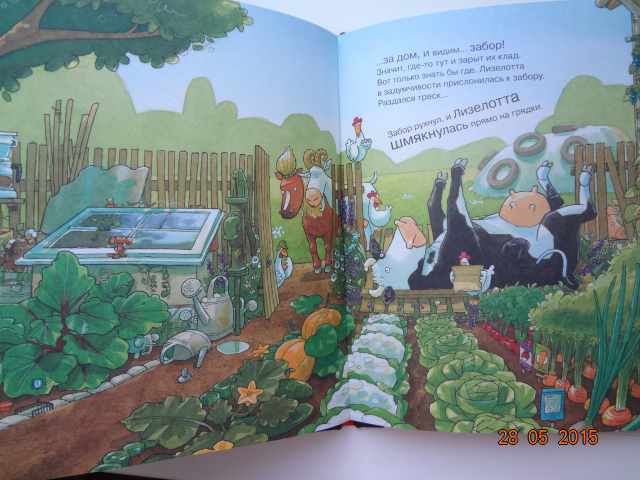 Пожалуй, что "Переполох в огороде" - это любимая книга в серии. Увлекательный сюжет полный действия, смешные ситуации, мельчайшие детали в иллюстрациях - всё это очень понравилось сыну!