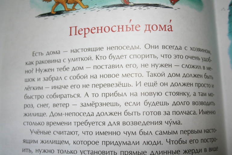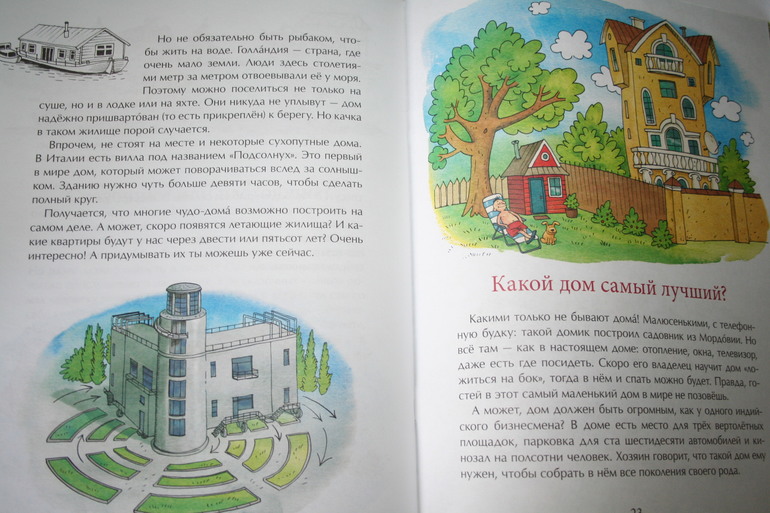 Дошкольникам и младшим школьникамИнтересная в матовой яркой обложке про разнообразные, порой удивительные дома со всех уголков мира. Мы с сыном познакомились и с обычаями северных народов, и узнали в каких домах живут цыгане и кочевые племена, как устроена иглу, в каких домах раньше жили японцы и многое другое. Все неизвестные ребенку слова сопровождаются пометками и разъяснениями, поэтому книга подходит и для самостоятельного прочтения детьми. На 24 страничках плотного офсета содержится море полезной информации для школьника. По книгам этой серии удобно делать доклады для школы.