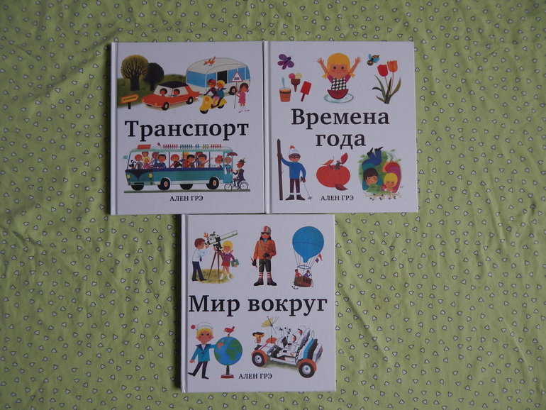 Серия книг Алена Грэ - это развивающие книги для детей, это очень красивые, винтажные иллюстрации, которые можно долго рассматривать, искать детали , знакомить ребёнка с окружающим миром. Текста в книгах мало, есть наводящие вопросы для построения диалога с ребёнком. Шрифт достаточно крупный, поэтому можно и для самостоятельного чтения купить. Обложка, как будто обтянута тканью, приятная на ощупь, только жалко, что белая, маркая.