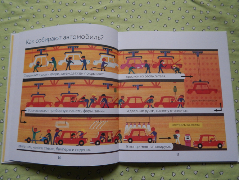 Ребенку помладше (2-4 лет) здесь можно познакомиться со всевозможными видами транспорта - и наземными, и водными и воздушными,метро, но все же читать её будет интересно как раз после четырех лет, потому что здесь можно узнать об устройстве автомобиля, океанского лайнера, катера, самолета, а также есть интересный разворот со сборкой автомобиля на заводе, о сервисном обслуживании и много других интересностей для маленьких почемучек. Все это будет непонятно 2-3 летнему малышу))