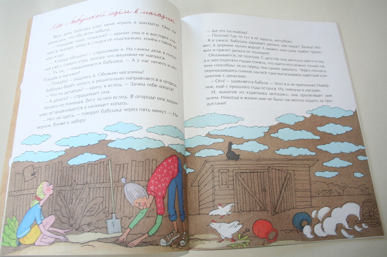 Средним и старшим школьникамЕкатерина Зверева, автор ''Волшебный зоопарк'' подарила миру еще одну замечательную и душевную сказку о прекрасной современной бабушке, которая не умеет печь оладушки, зато отлично играет в футбол, пуляет косточками по мишени, любит смотреть в телескоп и водит мотоцикл. Эта сказка станет настоящим украшением Вашей детской библиотеки. О такой интересной бабушки я думаю, мечтают все дети. Бумага плотная, офсетная. Книга сделана на совесть, подходит для самостоятельного изучения детьми.))