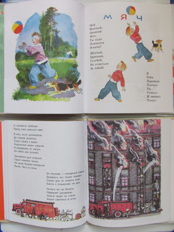 Одни из самых читаемых были произведения - "Мороженное", "Пожар" (самое любимое), "Веселый счет","Мяч", "Хороший день", "Мастер-Ломастер".