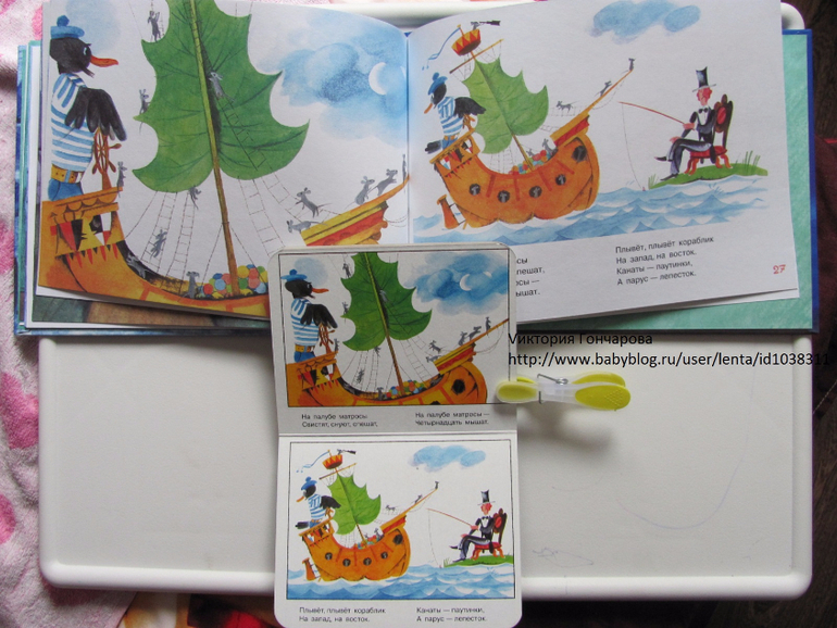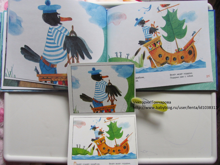 Небольшой формат - очень удобно ребенку, картонка. Читаем ее. Цвета сочнее чем в предыдущей книге.