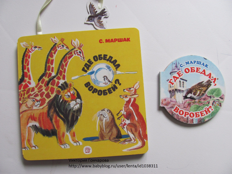 В возрасте 1,5 - 2 года любимое произведение у ребенка было "Где обедал воробей", сейчас конечно есть шикарное издание этого стихотворения от издательства "Лабиринт", (которое я тоже купила), но у нас было другое - миниатюрное, не такое заметное, но любимое.