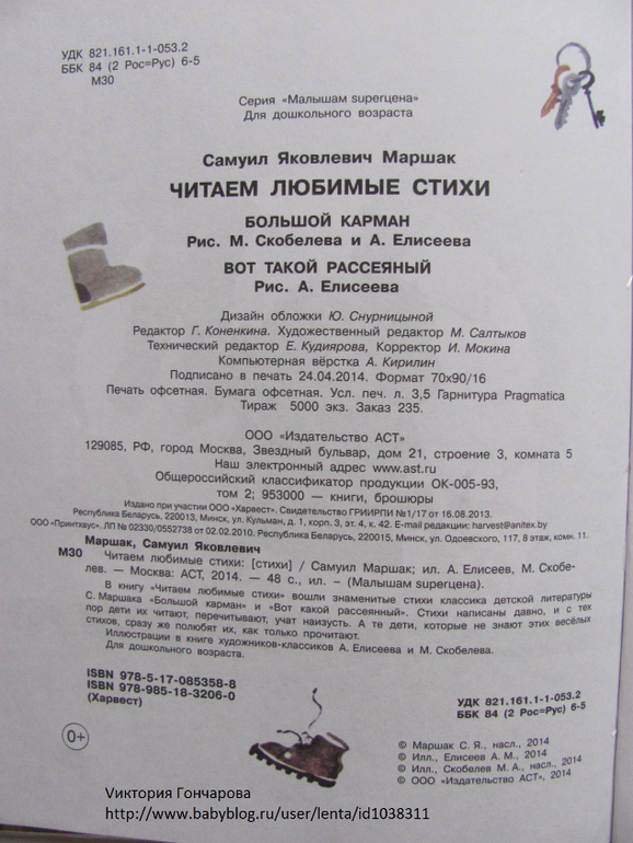 Сборник "Читаем любимые стихи" купила из-за произведения "Большой карман", но ,неожиданно для меня, ребенку понравилось и "Вот какой рассеянный" в илл. Елисеева - хохотал над его иллюстрациями. Кстати "Вот какой рассеянный" есть и в других наших изданиях, но ребенок там не оценил. "Большой карман" тоже понравился. Это произведение есть в издании более дорогом и качественном.