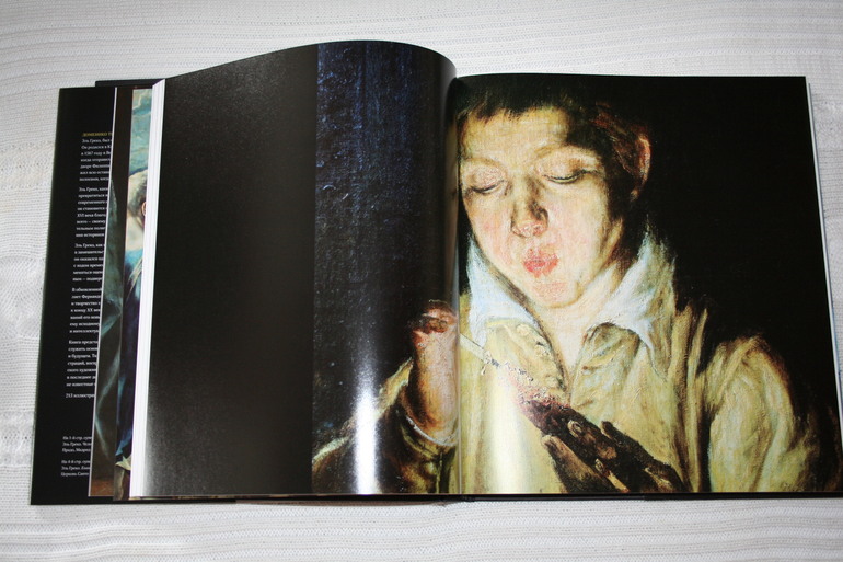 Средним и старшим школьникамБольшая красивая подарочная книга в суперобложке. На сегодняшний день лучшая книга про жизнь и творчество Эль Греко из всех что есть в продаже. Это не просто альбом с подборкой известных работ художника с короткой вступительной частью, а большой рассказ о выдающемся испанском художнике, его работах. Эль Греко - представитель испанского барокко, его картины находятся в музеях Испании, Италии, США, Греции, Великобритании. Всего в этом издании представлено 213 иллюстраций, 186 из которых выполнены в цвете. Книга большого формата, многие работы занимают целый разворот. Цветные репродукции хорошего качества, не темные и не размытые. Книга будет интересна всем тем, кто интересуется искусством, также она станет полезным подарком для учеников художественного училища. Книга тяжелая, но благодаря большому формату удобно рассматривать даже небольшие картины. В конце книги находятся приложения, указатель произведений с номерами страниц. Продается в закрытой прозрачной упаковке, предохраняющей от пыли и царапин во время транспортировки.